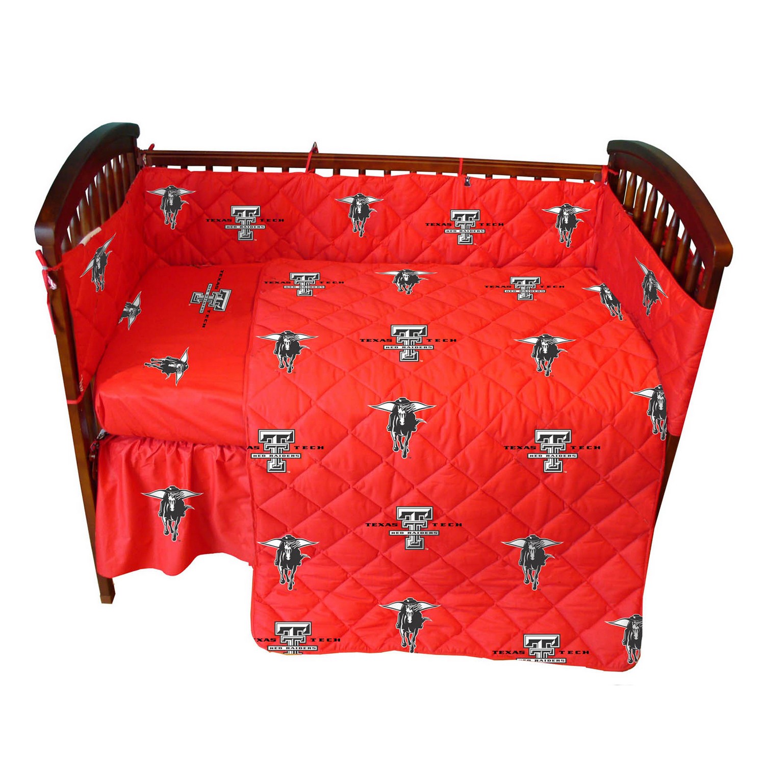 | Texas Tech Red Raiders Set includes: Quilted Comforter, 2 Fitted Sheets, Bumper Pad and a Dust Ruffle 100% Cotton Sateen, 200 Thread Count. Bright and Vibrant Officially Licensed Colors and Logos Fits Most Standard Size Crib Mattresses, Up to 6 Inches Machine Washable In Cold Water, Tumble Dry On Low Heat. Imported Machine Wash Cold; Tumble Dry Low |