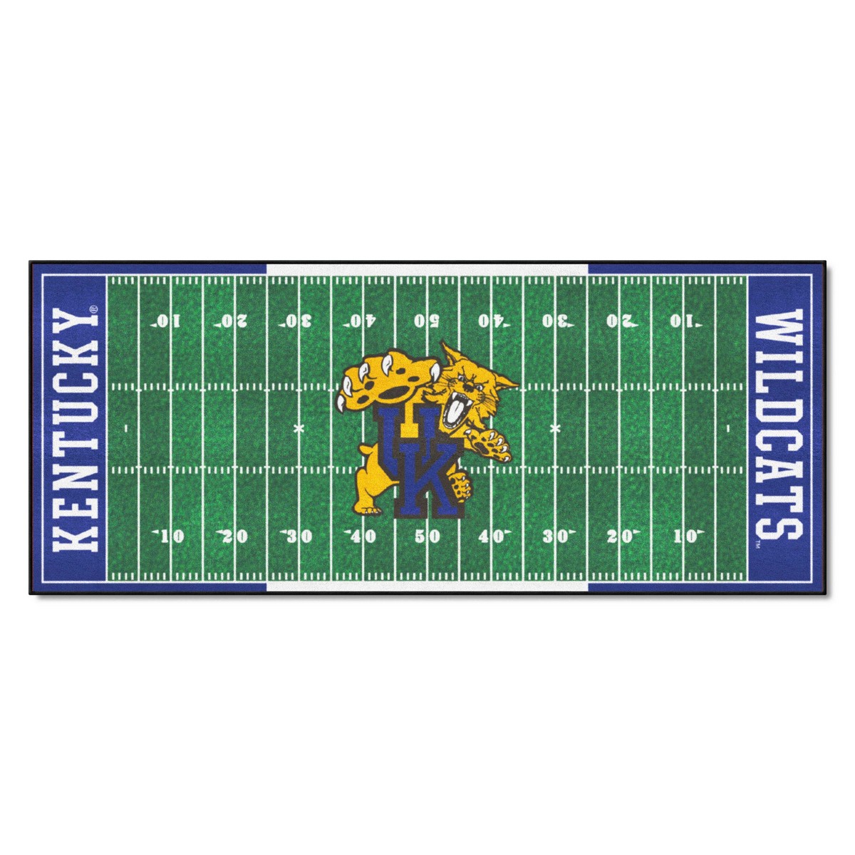 | Kentucky Wildcats Field Runner Mat - 30in. x 72in., UK Logo 9 Ounce, 100 % Nylon Face Recycled vinyl backing for a durable and longer-lasting product Machine made and tufted in the USA Non-skid backing with serged borders for added durability Machine washable; vacuum regularly and spot clean for any easy and quick clean Officially licensed and chromojet-printed in true team colors for vibrant, lasting color University of Kentucky in Kentucky |