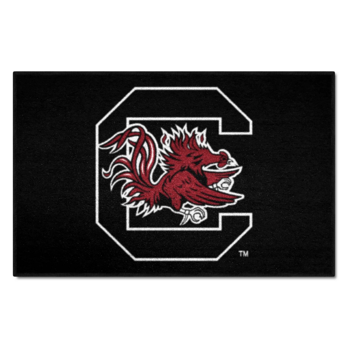 | South Carolina Gamecocks Starter Mat Accent Rug - 19in. x 30in. 9 Ounce, 100 % Nylon Face Recycled vinyl backing for a durable and longer-lasting product Machine made and tufted in the USA Non-skid backing with serged borders for added durability Machine washable; vacuum regularly and spot clean for any easy and quick clean Officially licensed and chromojet-printed in true team colors for vibrant, lasting color University of South Carolina in South Carolina |