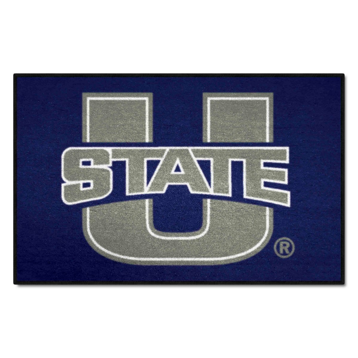 | Utah State Aggies Starter Mat Accent Rug - 19in. x 30in. 9 Ounce, 100 % Nylon Face Recycled vinyl backing for a durable and longer-lasting product Machine made and tufted in the USA Non-skid backing with serged borders for added durability Machine washable; vacuum regularly and spot clean for any easy and quick clean Officially licensed and chromojet-printed in true team colors for vibrant, lasting color Utah State University in Utah |