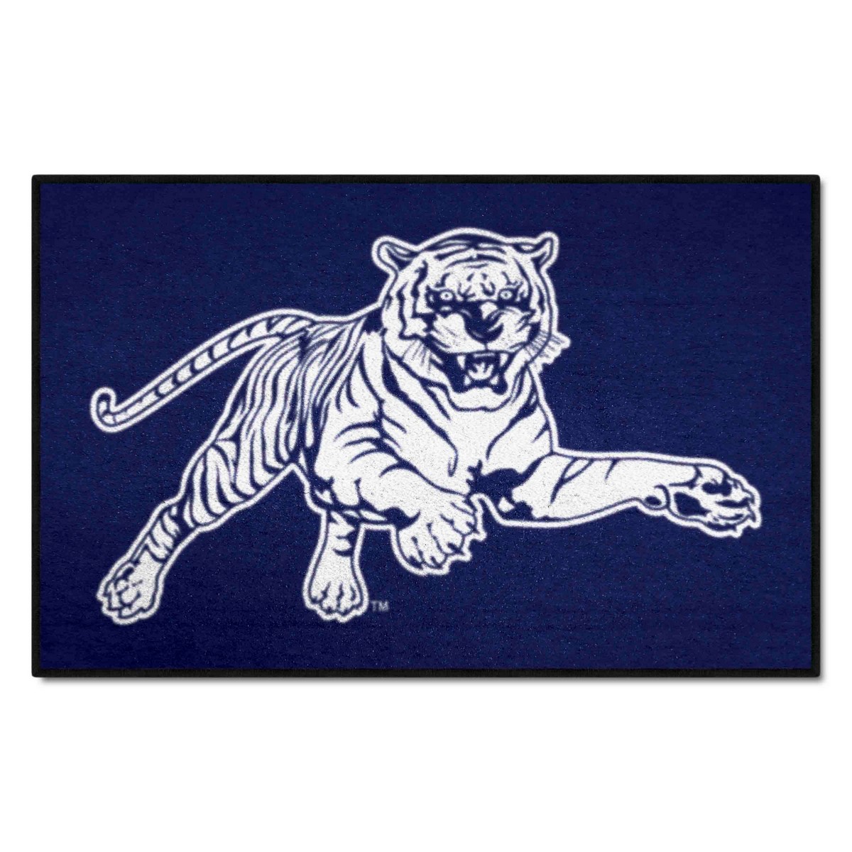 | Jackson State Tigers Starter Mat Accent Rug - 19in. x 30in. 9 Ounce, 100 % Nylon Face Recycled vinyl backing for a durable and longer-lasting product Machine made and tufted in the USA Non-skid backing with serged borders for added durability Machine washable; vacuum regularly and spot clean for any easy and quick clean Officially licensed and chromojet-printed in true team colors for vibrant, lasting color Jackson State University in Mississippi |