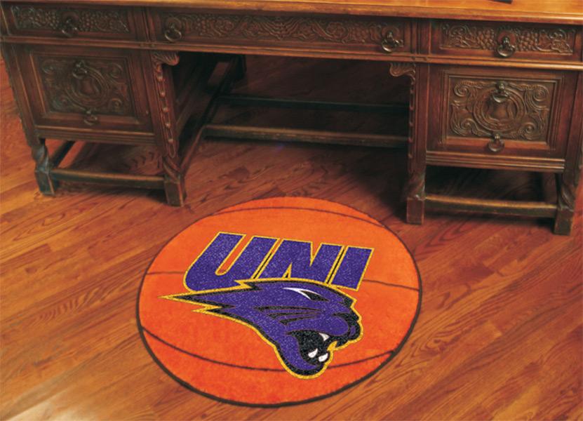 | Northern Iowa Panthers Basketball Rug - 27in. Diameter 9 Ounce, 100 % Nylon Face Recycled vinyl backing for a durable and longer-lasting product Machine made and tufted in the USA Non-skid backing with taped borders for added durability Machine washable; vacuum regularly and spot clean for any easy and quick clean Officially licensed and chromojet-printed in true team colors for vibrant, lasting color University of Northern Iowa in Iowa |