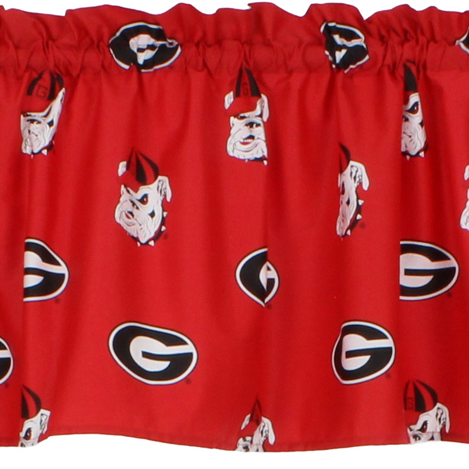 | Georgia Bulldogs Includes 1 curtain valance, 84 x 15-inches 100% Cotton Sateen Officially licensed colors and logos Machine washable cold, tumble dry low heat Matches curtain panels, sold separately Machine Wash Cold; Tumble Dry Low |