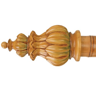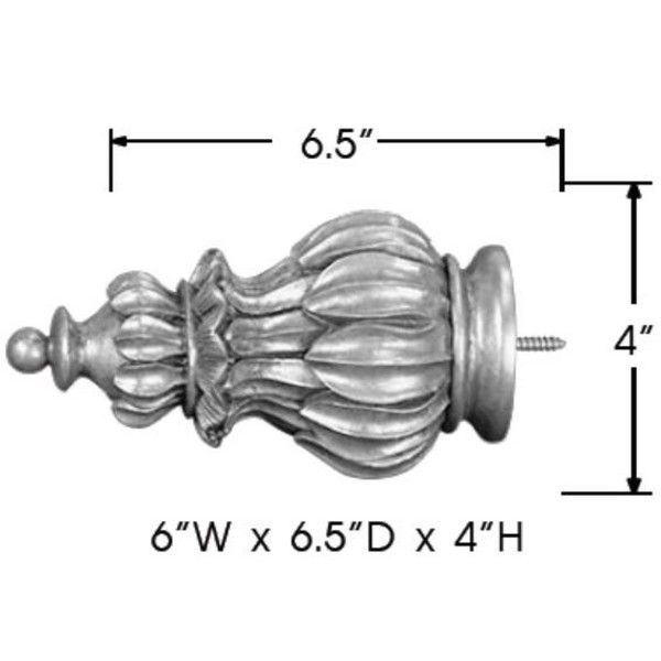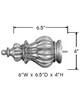 | Crown Finial is a traditional elongated crown leaf design. 6in w x 4in H x 6.5in Long Menagerie Hardware features custom finished drapery rods systems. You will be amazed at the large selection of decorative brackets and curtain rings available. Choose from fluted or smooth poles. The elbow will enable corner and bay window installations. A wood splice screw is available to create long curtain rods by combining poles together. |