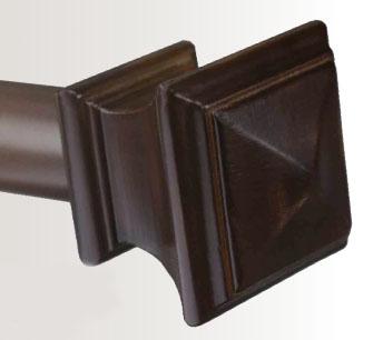 | The 1 3/8in compatible Galo finial design has received great reviews for its notably square, stately and well defined form. This versatile finial base fits both round Metro pole and the square shaped Quad rod. Shown in Walnut Finish. |