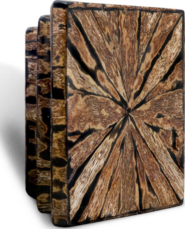 Finish: This inlay is the outer skin of the fruit of a tropical Kapok tree. The Kapok fruit is a large fruit with a fibrous, pulpy interior. When the skin is ground flat, the pulpy interior is exposed and that is what gives this inlay its unique texture. Customizing Your Design: