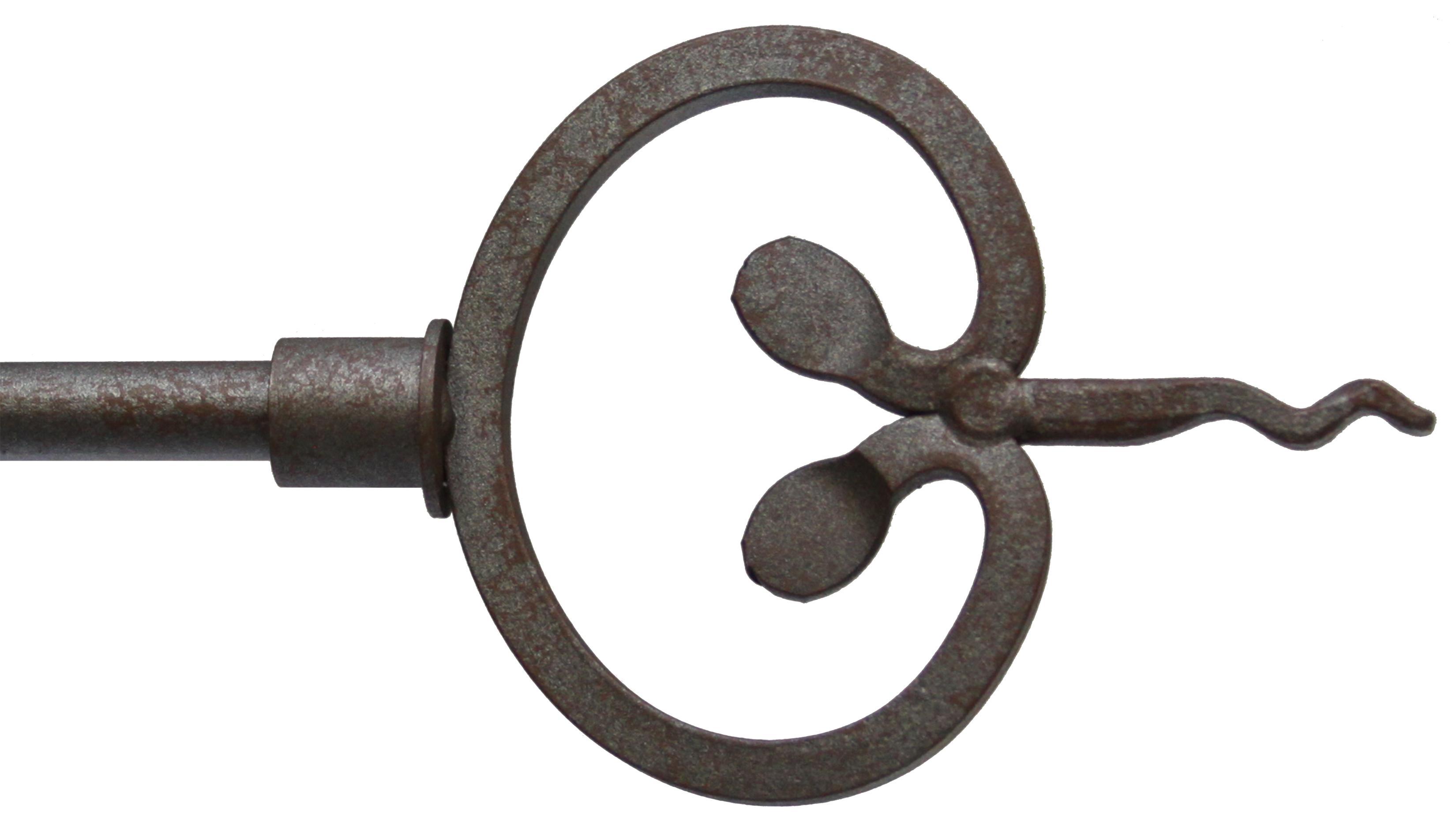 Please specify length up to 60". Made of 1/2" round iron. Designed to clip onto the body of the drapery ring, not the eyelet.