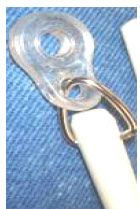 Do you need a way to attach the baton to your curtains? One method is to sew a ring to the inside of your curtains. The baton clip will snap on to the ring.
