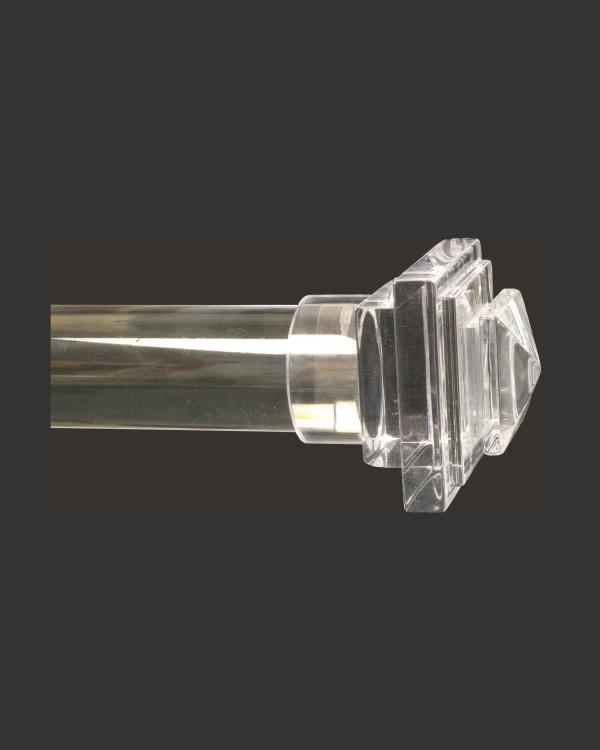 Crystal clear acrylic rods will mix and match with other 1 5/8" accessories. Rods can span 5 to 6 feet without a bracket. Recommended for light to medium weight treatments. Longer lengths can be achieved with acrylic cement.-Rings, brackets and finials sold separately.