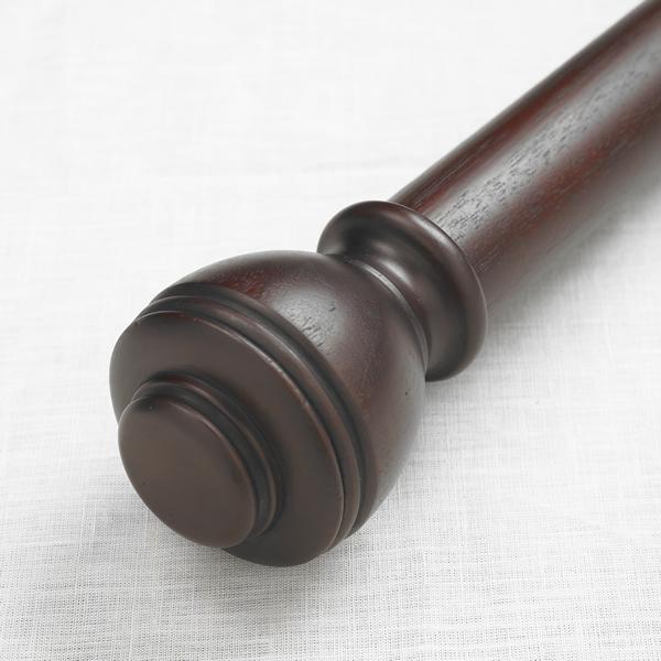 Beautiful plantation grown hardwood in rich finishes. Baton Draw Rod set includes two finials, wood brackets, mounting hardware, embedded aluminum track, master carriers, drapery carriers, end stops and baton.
