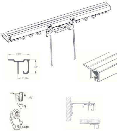 | Deluxe Ceiling or Wall Track with Extender Made-To-Measure Set Baton Draw with Return Extender Carrier: 9-840 Comes with 4 carriers per foot. Track: Graber 9-8191 Includes 33" Baton (8-635) Purchase brackets separately. Graber Part 9-973-1 |