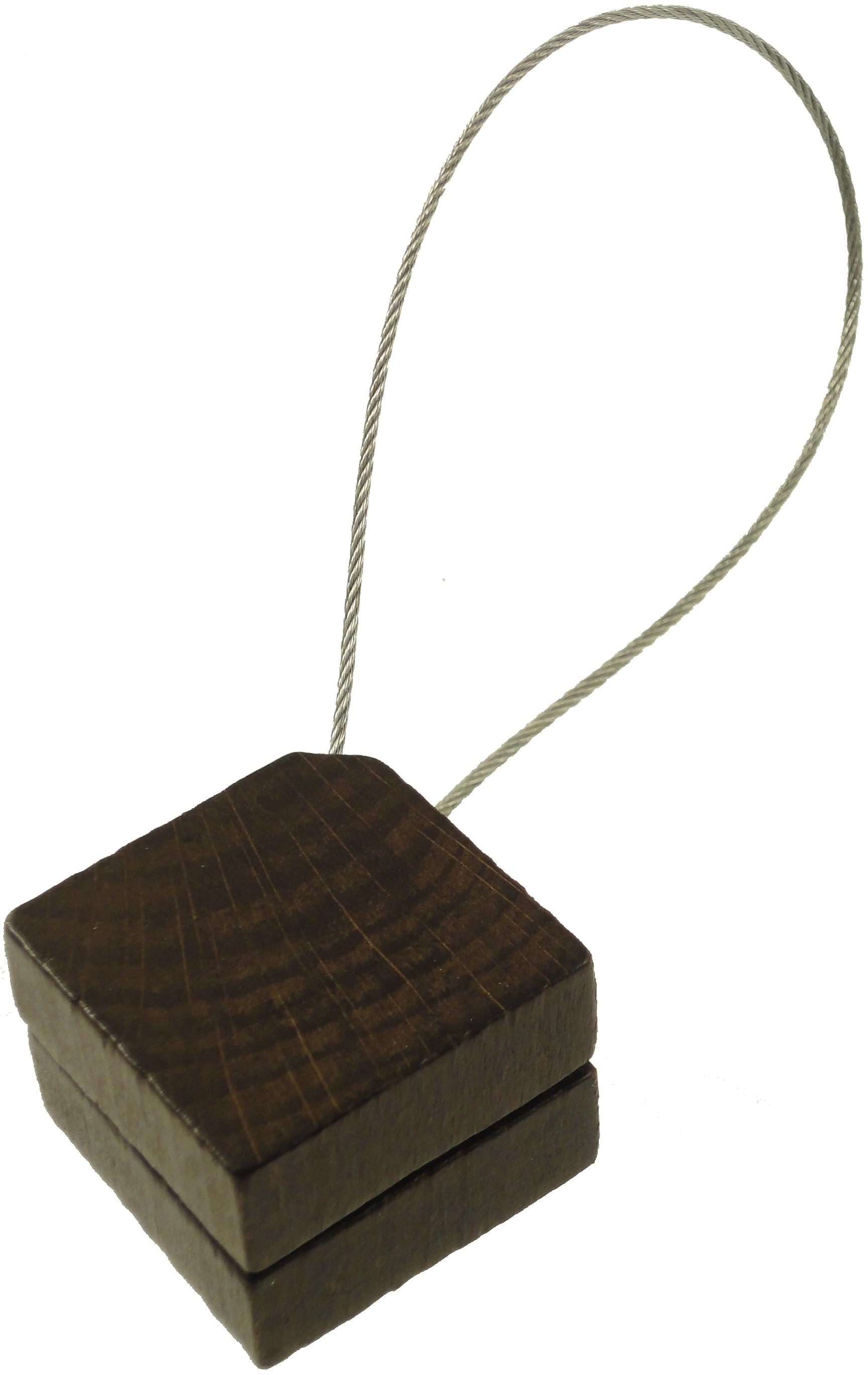 | Clips can hold tight through any curtain material without marking or damaging the fabric. Therefore, you do not need to drill or use any extra hardware to install your curtain rings or tie backs. Square Wood Clip with steel cable. Loop is 9.46" |