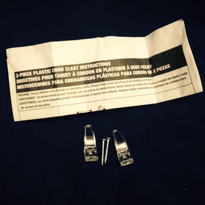 installing cord cleats. Clear plastic cord cleats include screws and installation