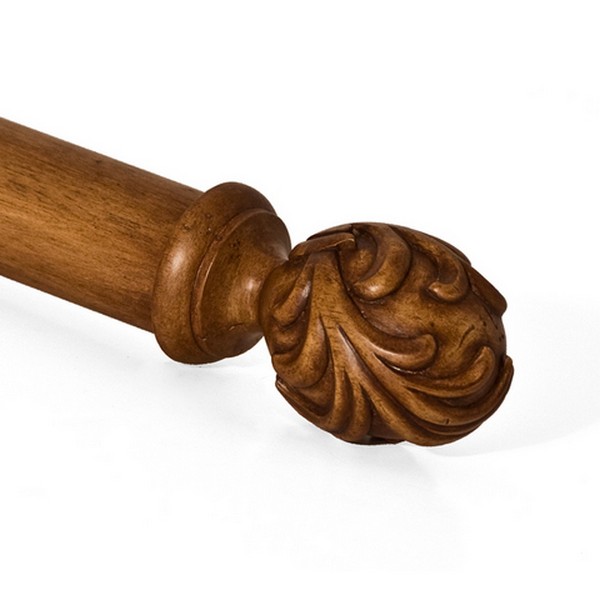 | Lovely hand-carved details are combined with solid wood hardware for a look that has old world charm and traditional styling. Due to the natural characteristics of this wooden curtain rod collection, finish variations are to be expected and appreciated. Create longer lengths with a wood screw splice. Support and conceal seam with a bracket. One bracket recommended every 2.5" feet. Four drapery rings recommended per foot of pole. Traverse and motorization options available. Give us a call for more information. |