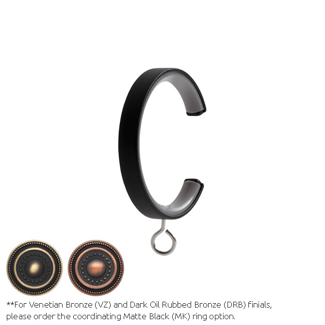 | Antiquities Curtain Rings for 1 3/8 inch Diameter Curtain Rods 2" ID, 2 3/8" OD Curtain Rod Rings include clips and plastic inserts for smoother gliding. Black Curtain Rings |