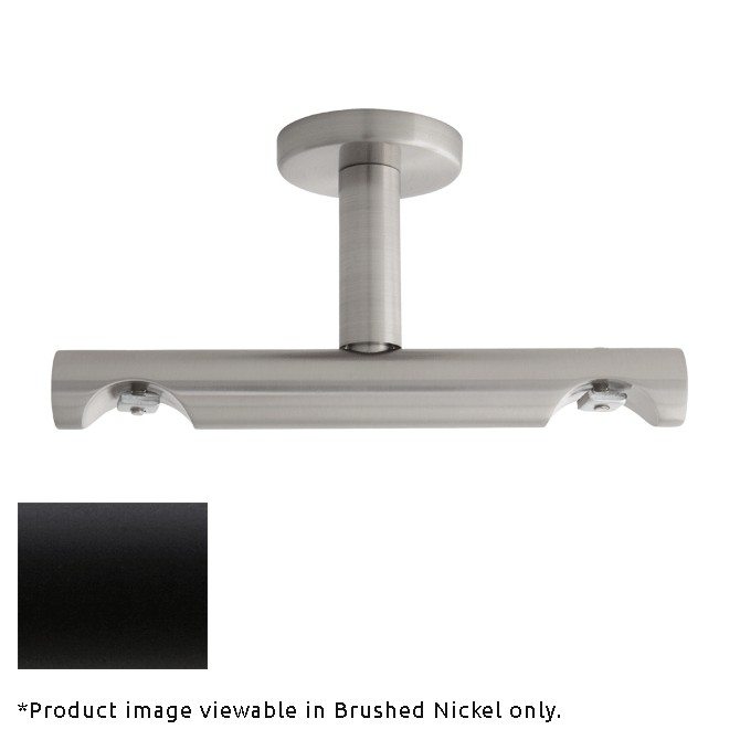 Decorative finials and batons may be purchased separately. If you choose an exposed baton master carrier, order a baton with an adaptor. If you choose a hidden baton master carrier, order a baton with a stainless steel clip. Choose from Pinch Pleat or Ripplefold carrier systems at 100% fullness. More About Ripplefold Curtain Tracks The double rod ceiling mount kit includes two traversing rods(H-Rail tracks) with double ceiling brackets. The base of the ceiling bracket is 1 7/8" in diameter. The ceiling bracket provides a 2 5/8" drop from the ceiling and the tracks are 4 1/2" apart. The endcaps are 3/4" long but cover the rod so they do not add more than 1/16" to overall length but do deduct from track length (1.5")