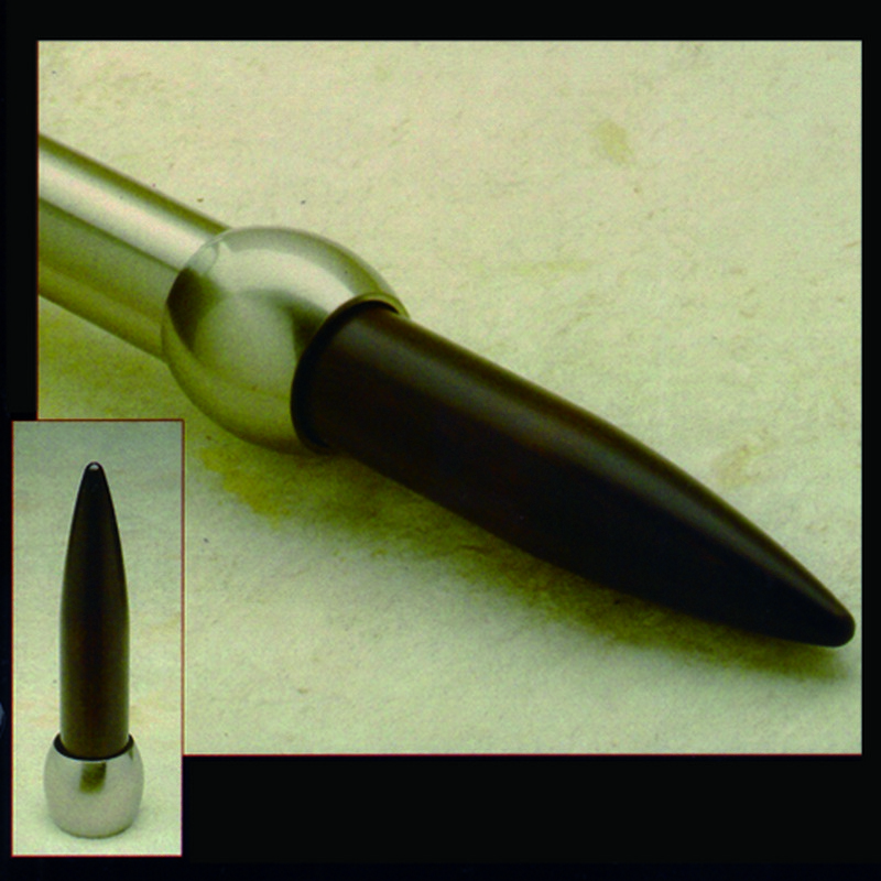| BEECHWOOD/STEEL FINIAL L 6 1/8 - H 1 1/2 - D 1 1/4 - BASE 1 1/8 |