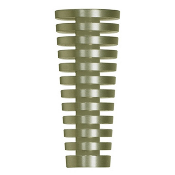 Contemporary metal finial measures 1 3/8" by 3 3/8" Long for 1" diameter aluminum curtain track or tubing. This modern window treatment hardware is ideal for light to medium weight curtains.