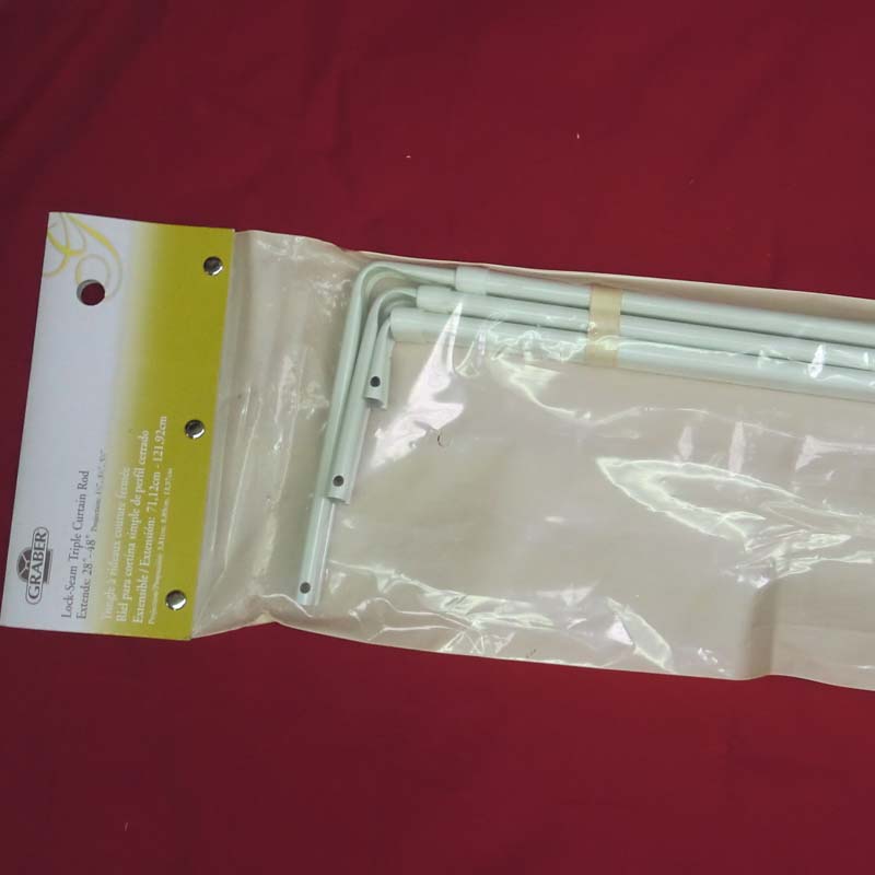 Coated inside and out, with no exposed edges. Lock-seam design gives the curtain rod additional strength needed for medium to heavy fabrics. Threader attached to rod assures smooth, no-snag shirring. Baked white enamel finish matches traverse rods. Triple curtain rod is perfect of valance, curtains and sheers used together to create your window treatments. |