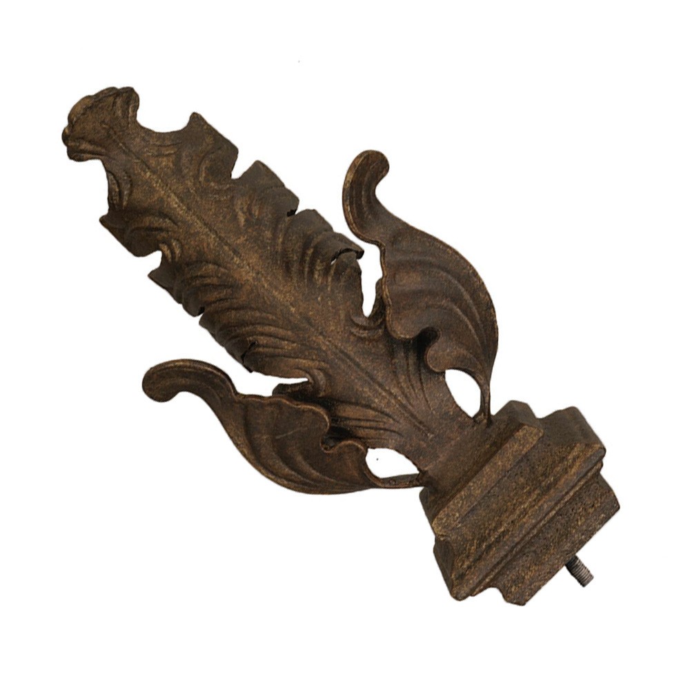 | Metal folded leaf design. Square color that compliments a Casa Artistica rod. Indoor/Outdoor powder coated, rust resistant finish. Textured Old Worlds style. Cast metal finials. These sturdy and durable curtain rods will create the look you want. Finials, rings, and rods are all powder coated for excellent rust resistence. All Casa Artistica finials are solid-cast into beautiful textured metal designs. Poles can be custom cut. Just add option and include the length you need. Do not forget the finial adapter for custom cuts. Custom cut items cannot be returned. Traverse options also available - give us a call. |