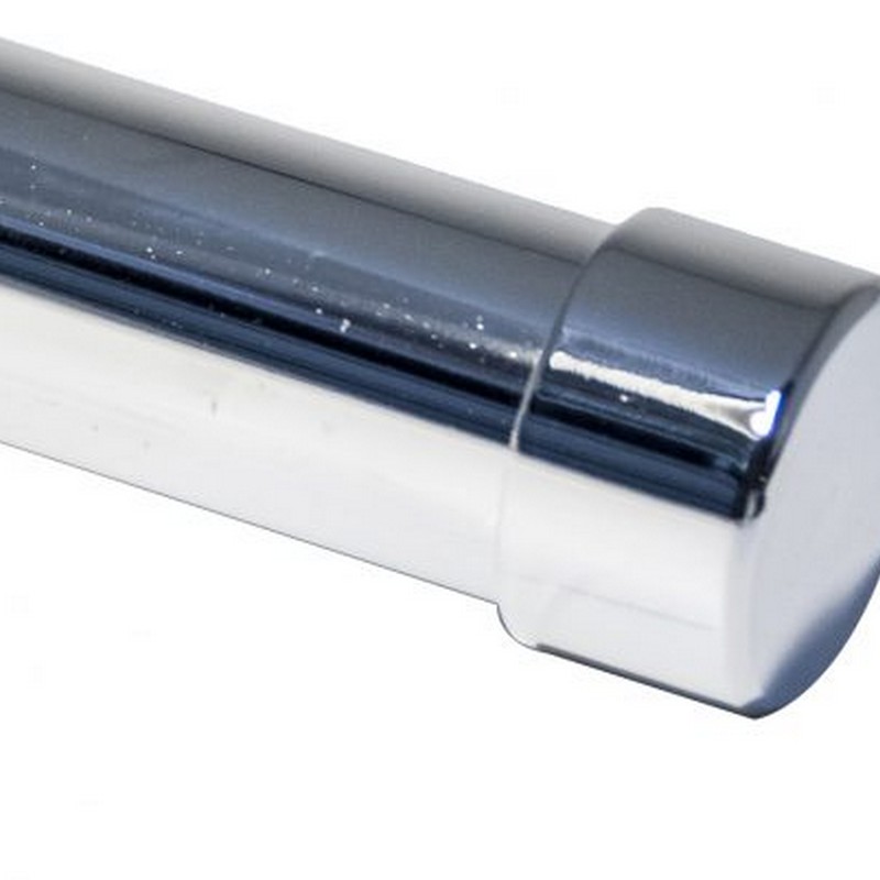 Sleek and minimal end cap. Metal pole is intended for all fabric types. Four drapery curtain rings recommended per foot. Smooth metal pole works well with grommet curtains. Use a splice to create extra long lengths and avoid oversize shipping charges. Custom cutting and bending available. Compatible with traverse tracks. Call for more information.