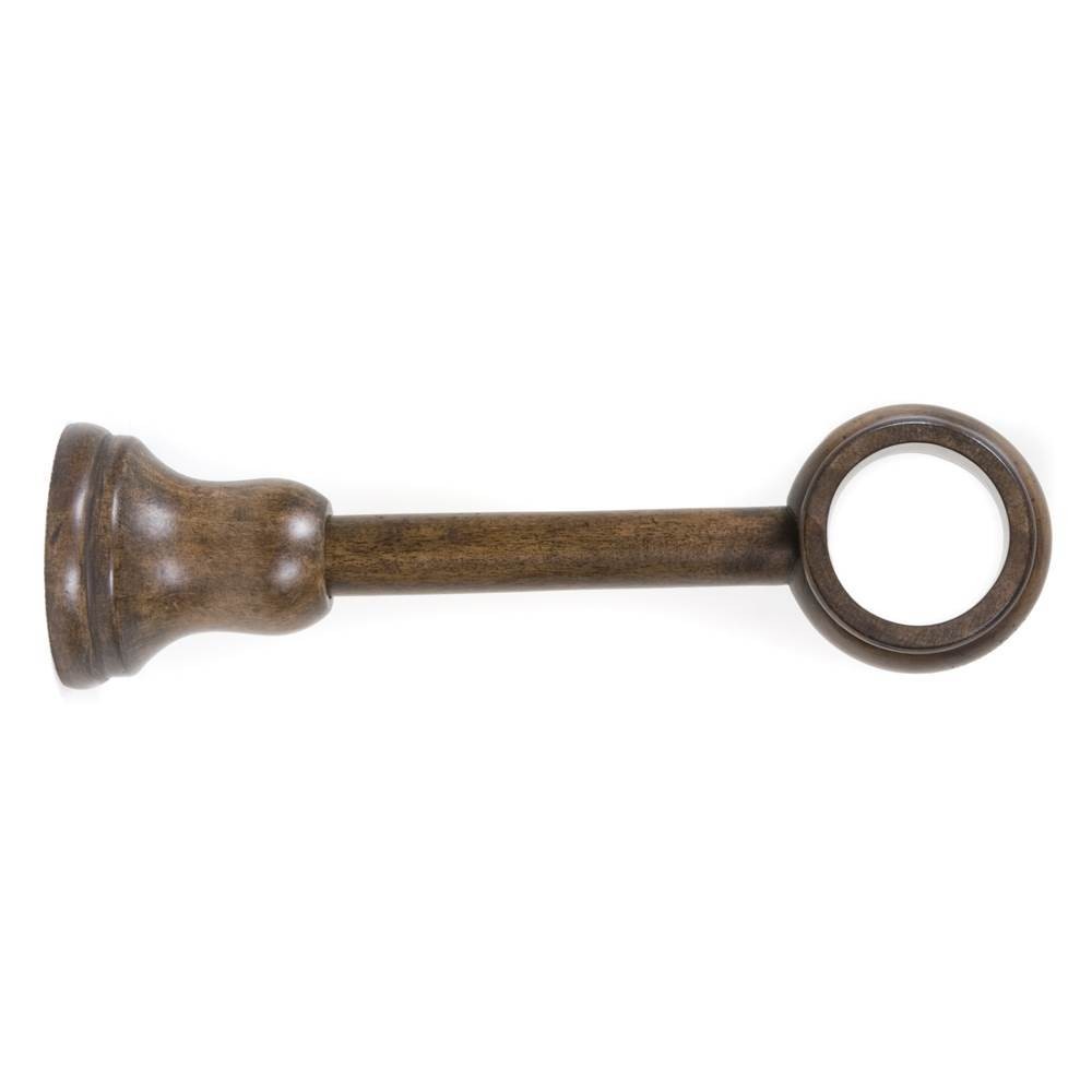 | Kasmir Grand Finale Wood Drapery Hardware Adjustable Loop Bracket - cut to size on site Base Diameter: 3.25 in Inside Diameter: 2.25 in Length: 12 inches Projection adjustable from 4in to 10.25in Mounts to wall with hidden metal mounts. |