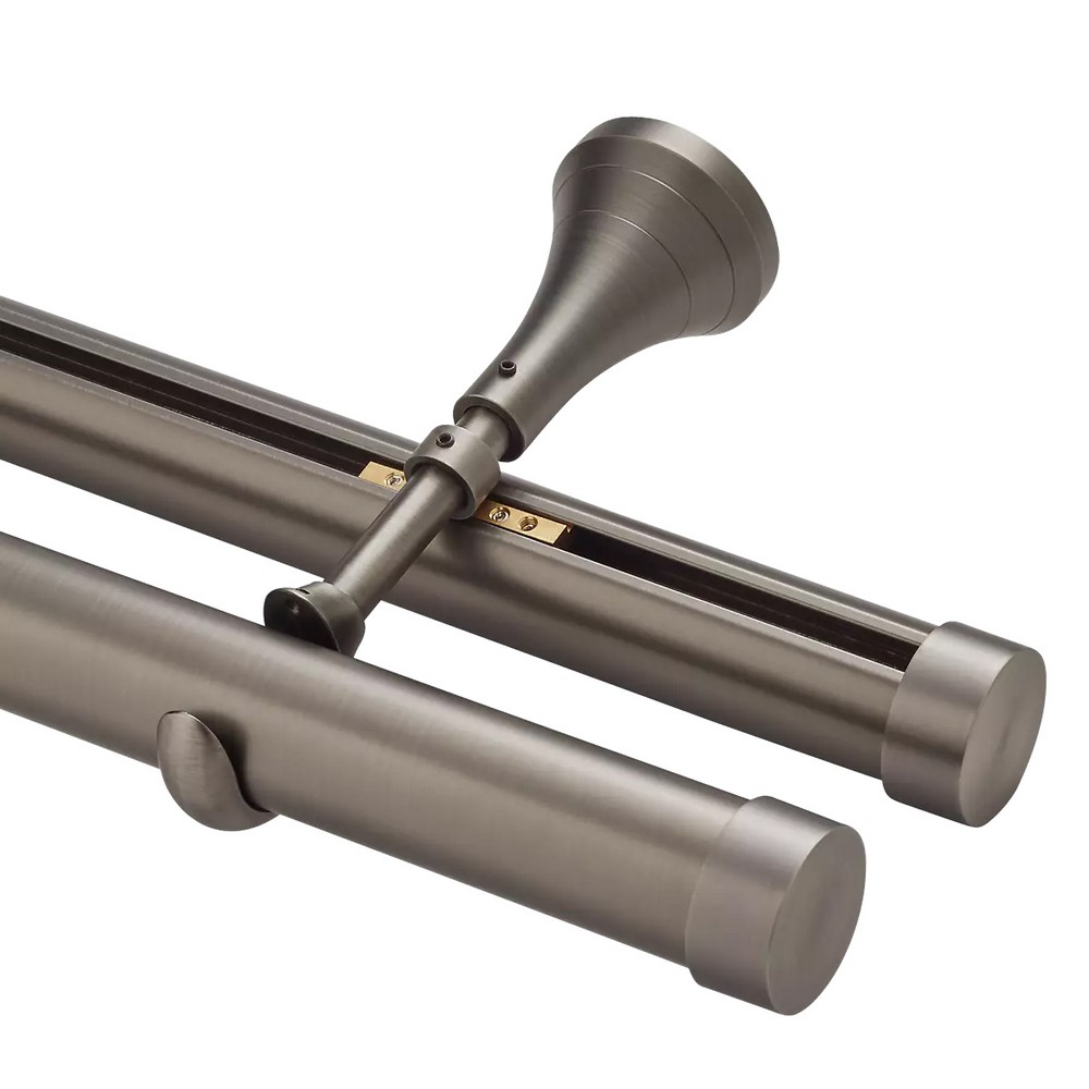 1 3/8in Diameter H-Rail Traverse System Mixed Double Rod Wall Mount Antique Pewter