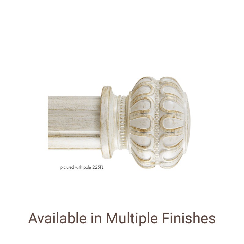 The Finial Company Flower Button Endcap Shown in 840 White with Gold Accents