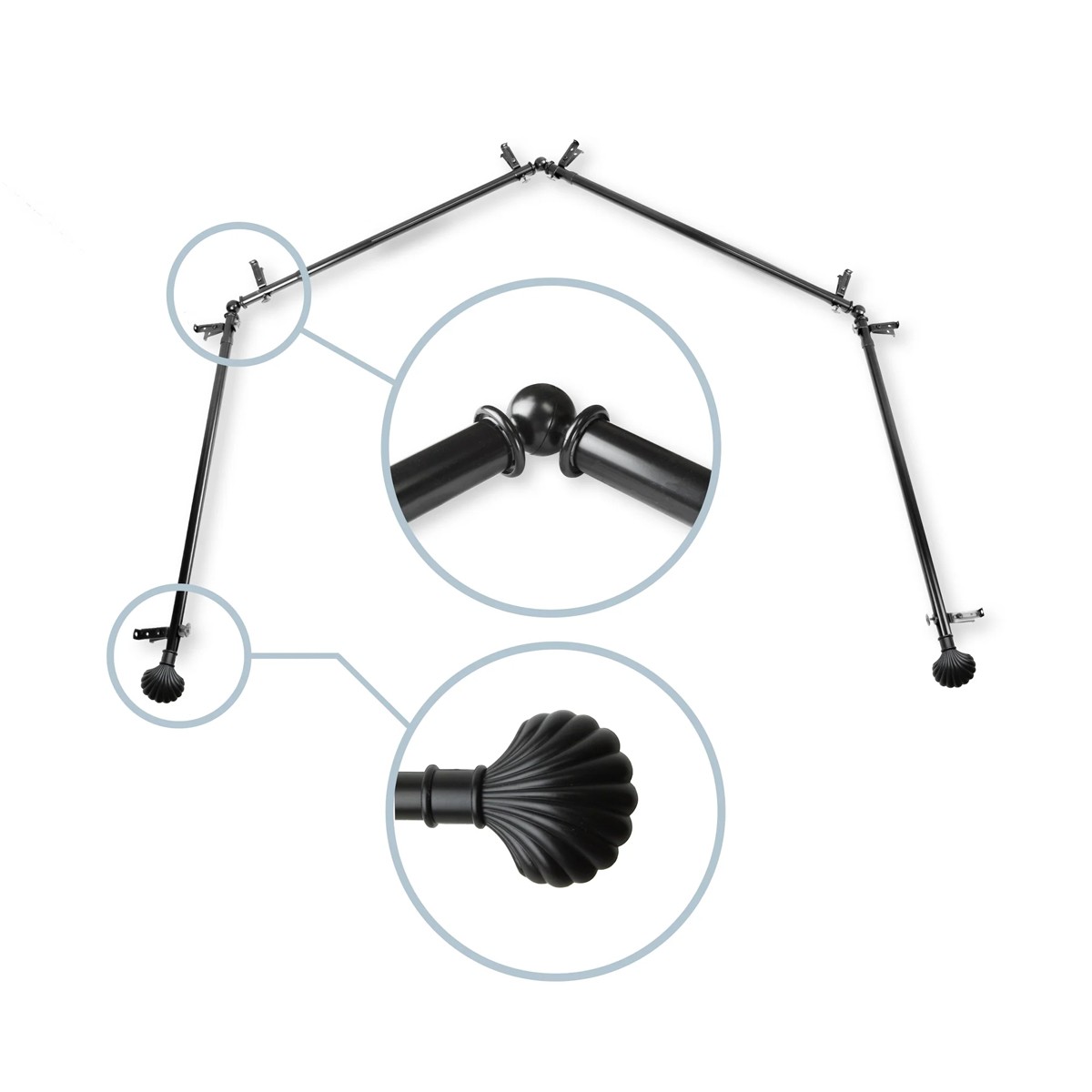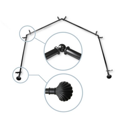 ABO Window Fashion Scallop 4 Sided Bay Window Rod Set 2 Black