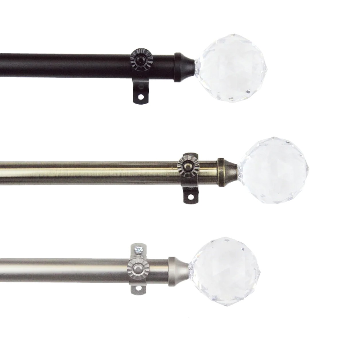 Includes one 13/16in diameter adjustable high-quality steel telescoping pole, two finials, brackets, and mounting hardware 18-28 inch - 2 brackets 28-48 inch - 2 brackets 48-84 inch - 3 brackets 66-120 inch - 3 brackets 120-170 inch - 4 brackets Bracket projection: 2.875 inch Clearance: 2 inch Material: Steel rod/ resin finial.