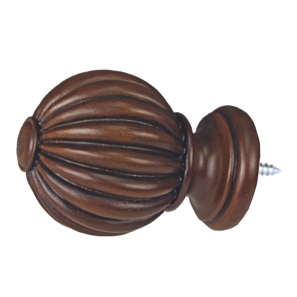 | Fluted Ball Finial features a twisted round design. 4.5in w x4.5in H x 5in Long Menagerie Hardware features custom finished drapery rods systems. You will be amazed at the large selection of decorative brackets and curtain rings available. Choose from fluted or smooth poles. The elbow will enable corner and bay window installations. A wood splice screw is available to create long curtain rods by combining poles together. |