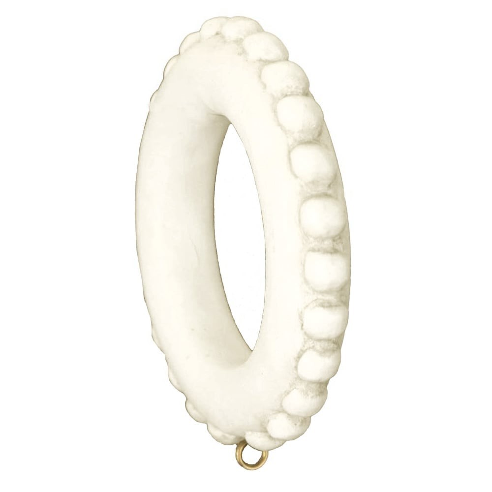 | Beaded decorative curtain rings. Inside Diameter: 2.25in - Outside Diameter: 3.5in - Ring Thickness: .5in - Top to bottom of eyelet is 4 inches total. |