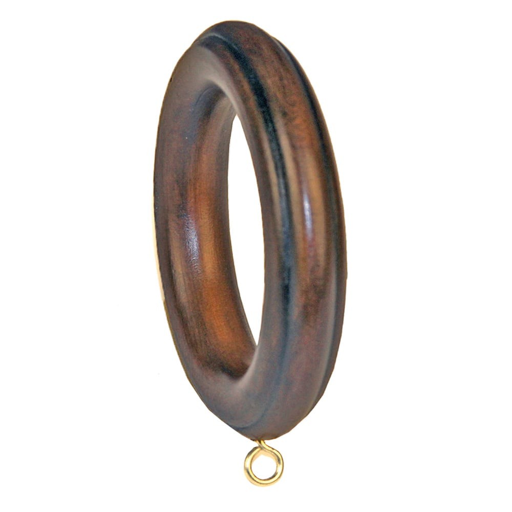 | Wood camelback decorative curtain rings. Inside Diameter: 2.25in - Outside Diameter: 3.25in - Ring Thickness: .5in - Top to bottom of eyelet is 3.75 inches total. |
