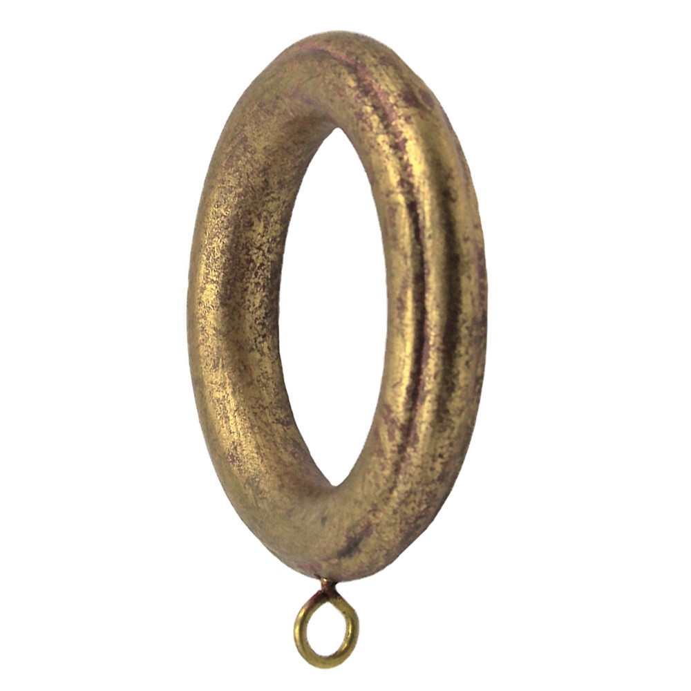 | Wood camelback decorative curtain rings. Inside Diameter: 2.25in - Outside Diameter: 3.25in - Ring Thickness: .5in - Top to bottom of eyelet is 3.75 inches total. |