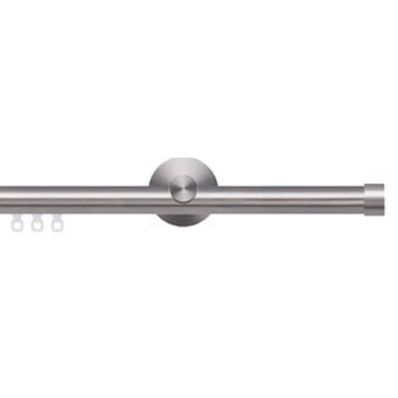| Precision German engineering make this modern metal curtain rod system the choice for you. Aluminum components in Bronze, Black, Gold and Silver are suitable for outdoor use with the purchase of the outdoor mounting plate. Track lengths exceeding 106 inches will incur significant additional freight charges. The collection's track connector splice can be used to achieve longer spans- the required center bracket will help conceal the resulting seam. Hardware dimensions describe the physical size of an item - not the rod size it's compatible with. |