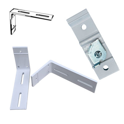 | 94125 double wall bracket. Double wall bracket has a 6" return and a 1 1/4-2 1/2" clearance. Ceiling brackets connect to double wall bracket. Order two track sets with ceiling mount brackets. |