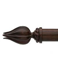 Versailles wood curtain rods embodies metallic brilliance by virtue of water gilding that is found in these wood curtain rods by Brimar. This unique ancient art entails artisans hand applying layers of gesso and red clay followed by a meticulous process utilizing water to aid in the application of the gold, bronze or silver leaf. Select details on the finials and drapery hardware are then polished, revealing the clay for an elegant aged affect. Beautiful hand painted pieces in a rich dark walnut grain also complement the Versailles 2" wood curtain rods by Brimar. A complete compliment of drapery hardware is included to complete the great looks and include curtain rings, several bracket styles, tiebacks a splice for making the curtain rods any length and more.