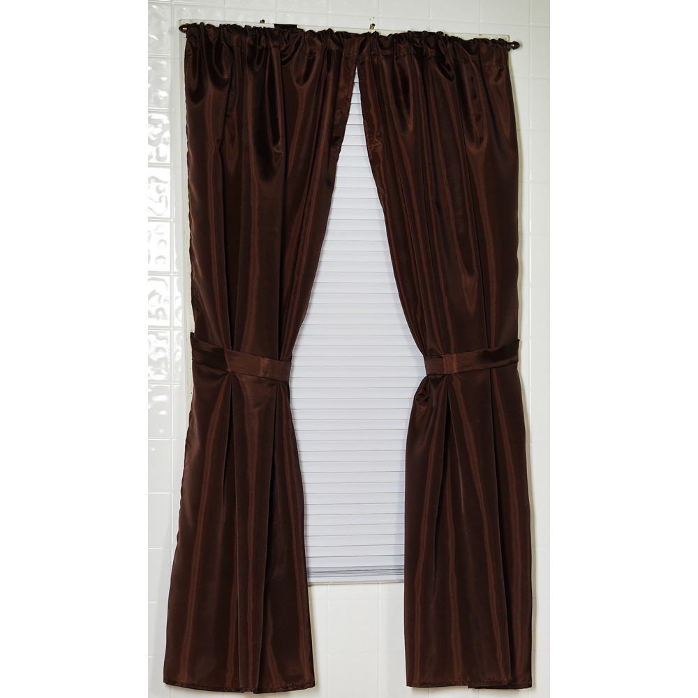 100% Polyester fabric window curtain with two panels and two tie backs in Brown size 54 wide x 34 long