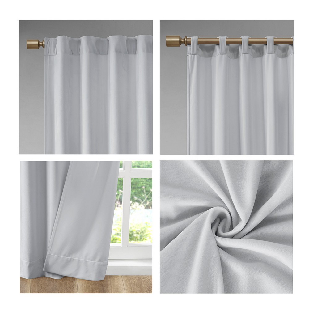 Colt Room Darkening Metallic Printed Poly Velvet Rod Pocket Back Tab Window Panel Pair Light Grey