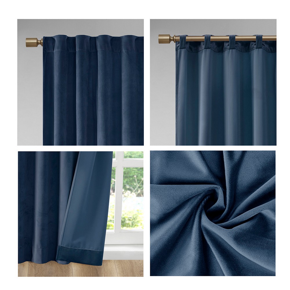 Colt Room Darkening Metallic Printed Poly Velvet Rod Pocket Back Tab Window Panel Pair Navy