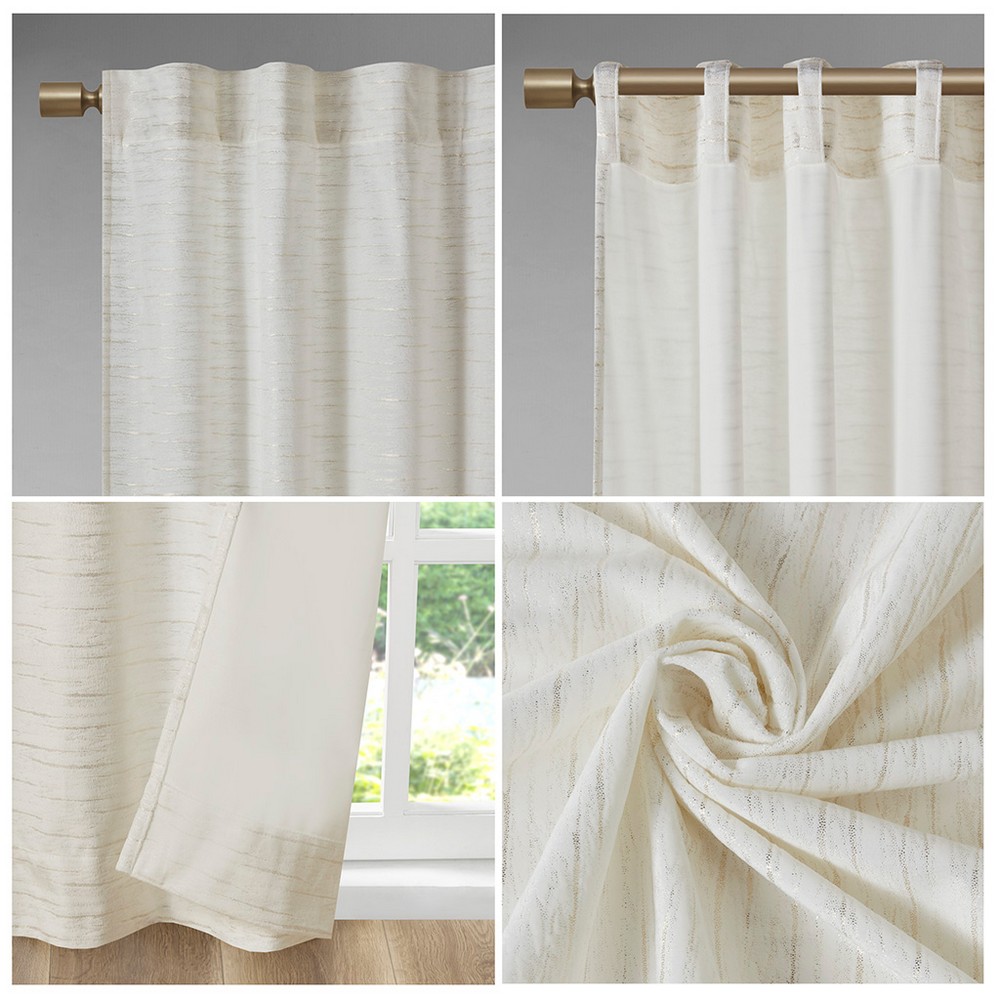 | 510 Design 37x84" 2 Window Panels: 37"W x 84"L (2) Polyester velvet fabric Modern/Contemporary Style Includes 2 Piece(s) Machine washable Elevate your living space with the 510 Design Colt Poly Velvet Window Panel Pair. Crafted from soft, white poly velvet, these panels provide a plush texture and subtle sheen that effortlessly enhances any décor. The unique gold metallic detail adds a touch of sophistication, making these curtains a stunning addition to any room. Besides their aesthetic appeal, they offer practical benefits too; their thick fabric darkens rooms and increases privacy. They're OEKO-TEX certified, ensuring they're free from harmful substances for your comfort and wellness. These curtains are easy to hang thanks to a rod pocket top and back tabs, offering a clean, tailored look. They're machine-washable and fit rods up to 1.25” in diameter, making them a luxurious yet convenient choice for your living room or bedroom. |