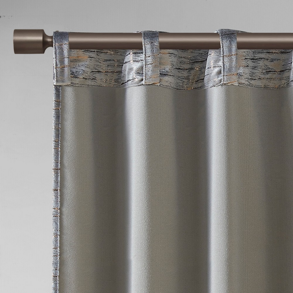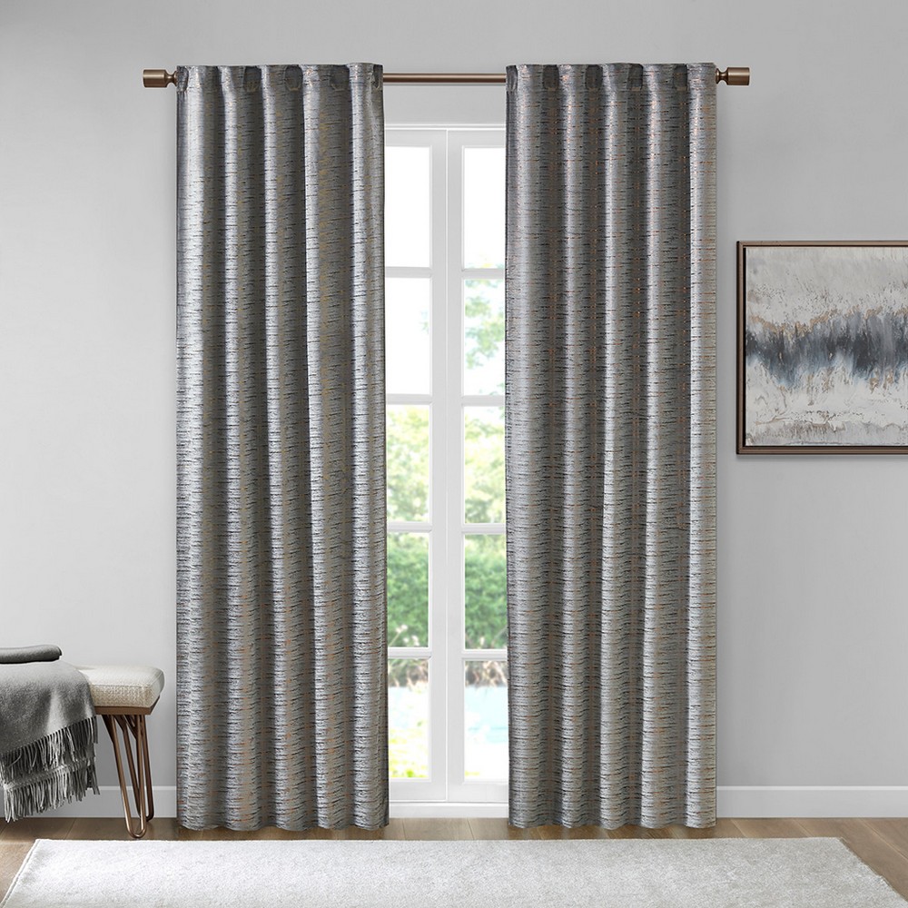 Colt Room Darkening Metallic Printed Poly Velvet Rod Pocket Back Tab Window Panel Pair Grey Copper