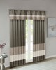 | Madison Park 50x18" 1 Window Valance: 50x18" 100% Polyester Polyoni.Lining: 100% Polyester Transitional Modern Style Includes 1 Piece(s) Machine wash cold, gentle cycle, and separately. Do not bleach. Tumble dry low, remove promptly. Do not iron. If there is no free movement in the washer or dryer, use large capacity commercial washer/dryer. Madison Park Amherst Polyoni Pintuck Window Valance is a simple way to add style to your room. This window valance features a modern striped design in natural hues of ivory, taupe, and mocha combined with pintuck detailing for beautiful texture and dimension. The added lining helps filter the perfect amount of light and creates fullness for better drapability. Finished with a rod pocket top, this window valance fits up to a 1.25" diameter rod. |