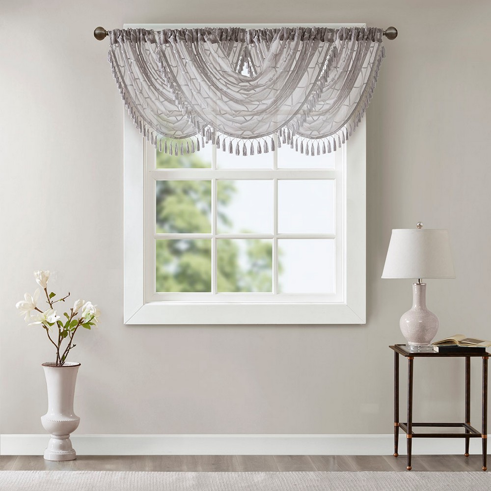 Irina Diamond Sheer Embroidered Waterfall Valance 38x46"