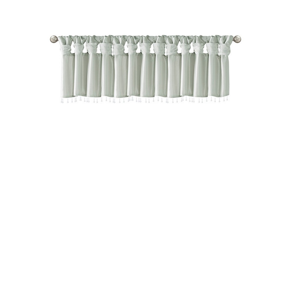 | Madison Park 50x26" 1 Valance: 50"W x 26"L Material: Faux Silk Liner: Microfiber Transitional Modern Style Includes 1 Piece(s) Machine Washable Give your home a decorator’s touch with the Madison Park Emilia Window Valance. Made from a faux silk fabric, this elegant window valance features a DIY twist tab top finish that creates rich deep folds, combined with a beautiful bead trim for an alluring charm. Added lining offers more privacy and a fuller appearance, while the luxurious sheen and dusty aqua tone provides a touch of sophistication to your decor. Easy to hang, this tab top valance updates any decor into subtle glamour. Hanging instructions are included. Fits up to a 2" diameter rod. |