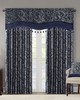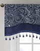 | Madison Park 50x18" 1 Valance: 50"W x 18"L 100% polyester, Rod Pocket with beads on the bottom, microfiber lining Traditional Style Includes 1 Piece(s) Machine Washable For a unique and luxuriously classic style, our Madison Park Aubrey Beaded Valance is the perfect extra touch to your decor. The alluring jacquard weave is inspired from an updated paisley motif and is woven in beautiful hues of navy, ivory, and a hint of silver for a shimmering accent. The window valance features solid faux silk piecing and flat piping details, while delicately finished with a scalloped bottom design and intricate gold bead trim, creating an intriguing elegant look. This window panel is also OEKO-TEX certified, meaning it does not contain any harmful substances or chemicals, ensuring quality comfort and wellness. Simply hang on rod pocket; fits up to a 1.25 diameter rod. |