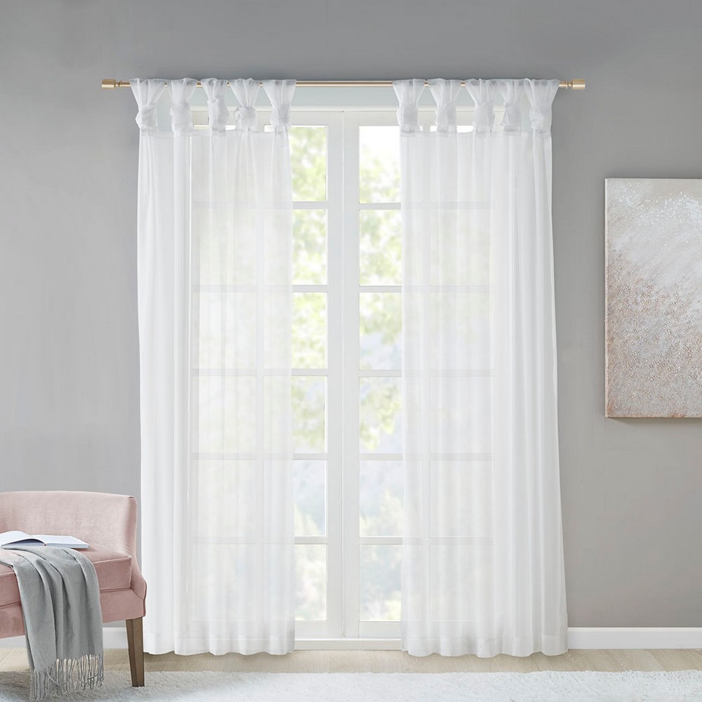 | Madison Park 2-PK 50x63" 2 Window Sheers: 50"W x 63"L (2) 100% Polyester Transitional Modern Style Includes 1 Piece(s) Machine Washable Soften your space with the Madison Park Ceres Twisted Tab Voile Sheer Window Pair. This soft panel pair provides a simple and airy update to your decor, with its lightweight voile sheer base and delicate color palette for the perfect ethereal touch. The DIY twist tab top creates beautiful and delicate folds for a stylish decorator's touch. This window panel is also OEKO-TEX certified, meaning it does not contain any harmful substances or chemicals, ensuring quality comfort and wellness. Machine washable and easy to hang, open, and close throughout the day and fits up to a 1.25" diameter rod. This window panel pair is perfect on its own for a soft filter or layer with others for a dramatic effect. |