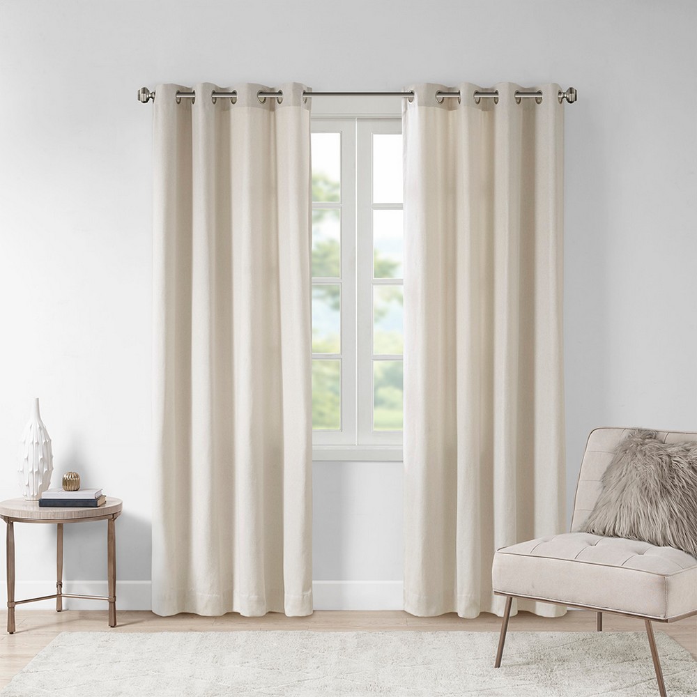 | Madison Park 50x63" 1 Window Panel: 50"W x 63"L 100% polyester Modern/Contemporary Style Includes 1 Piece(s) Machine Washable The Madison Park Englewood Solid Piece Dyed Grommet Top Window Panel brings a soft and modern touch to your home decor. This solid natural piece dyed window panel features a light heathered effect, combined with our lightweight warmth base fabric that's sure to cozy up any room and decor. Finished with an antique silver grommet top makes this curtain easy to hang, open, and close throughout the day - grommets fit up to 1.25" standard diameter rod. Lightweight, warm, and textured, makes this solid heathered panel the perfect addition for an easy to live with style throughout the seasons. Two panels will need to be purchased to suit any standard size window. |