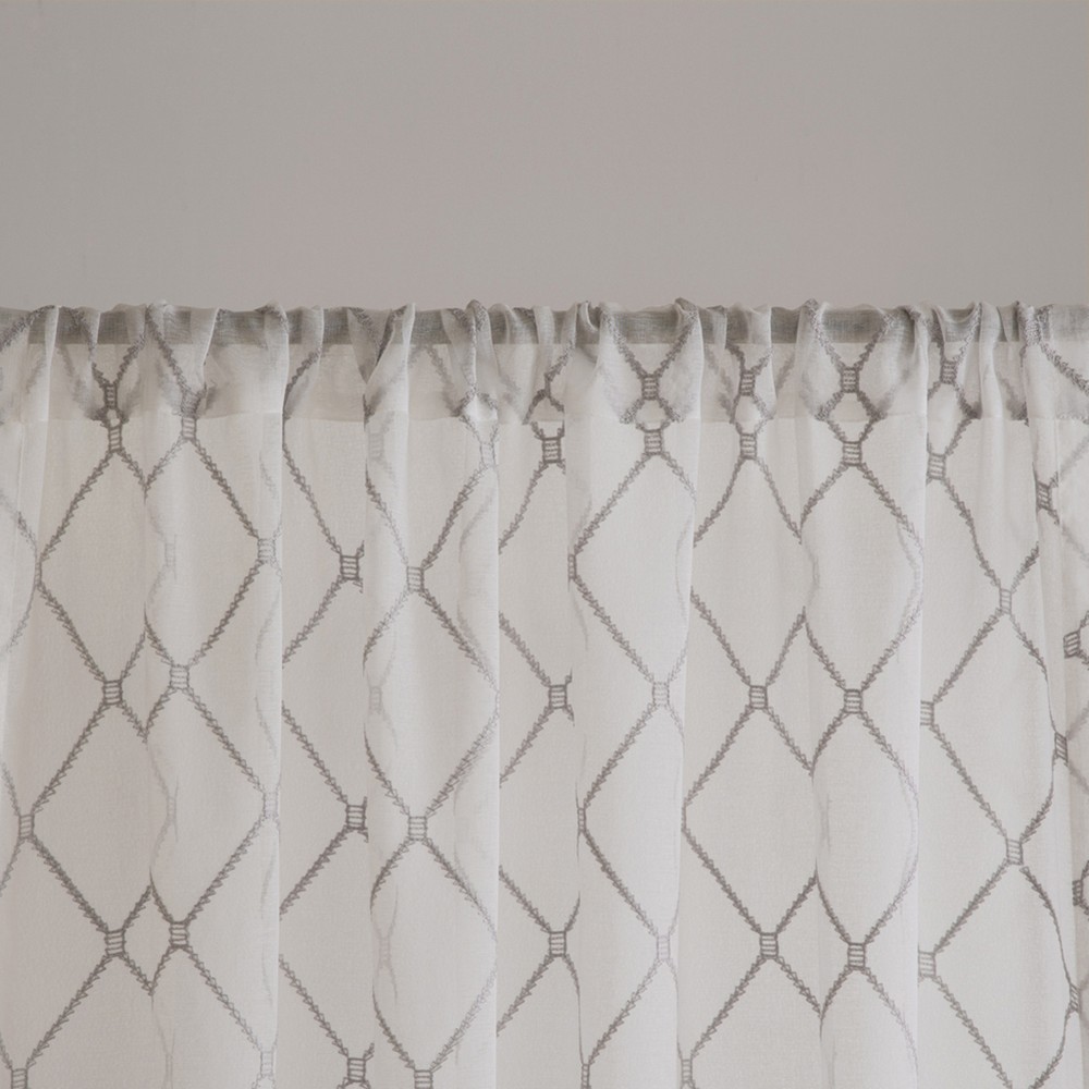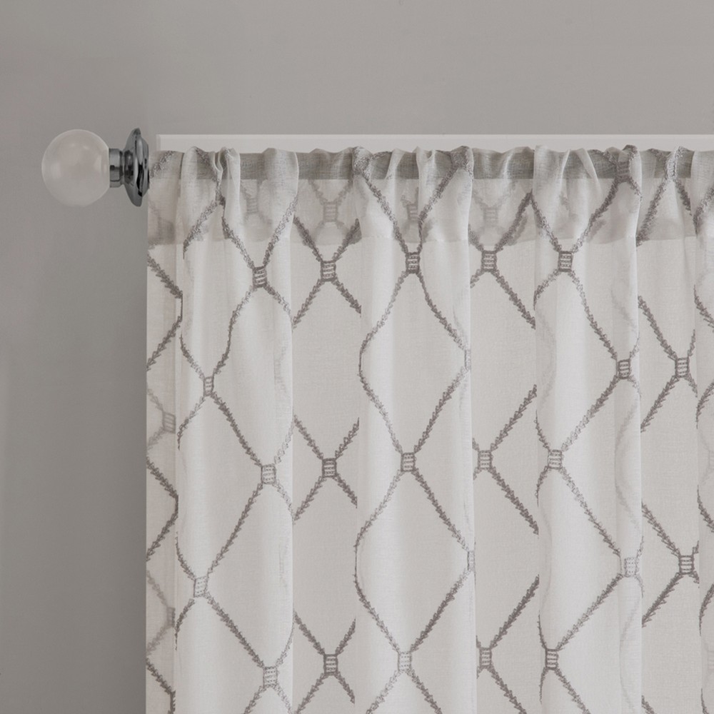 Irina White/Grey Diamond Sheer Window Curtain Panel