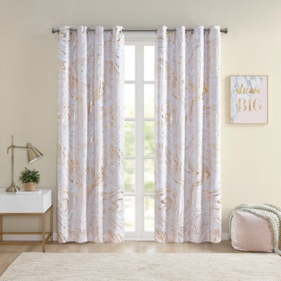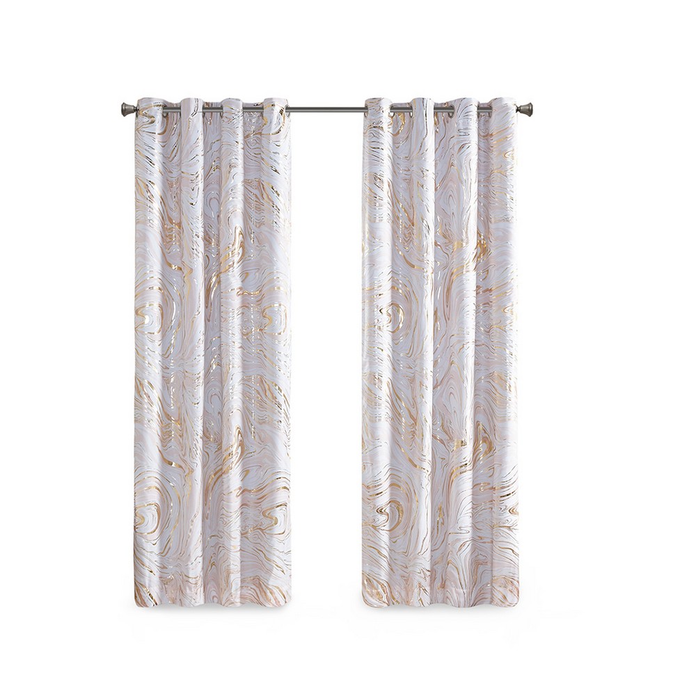 Rebecca Blush/Gold Grommet Top Printed Marble Metallic Total Blackout Curtain